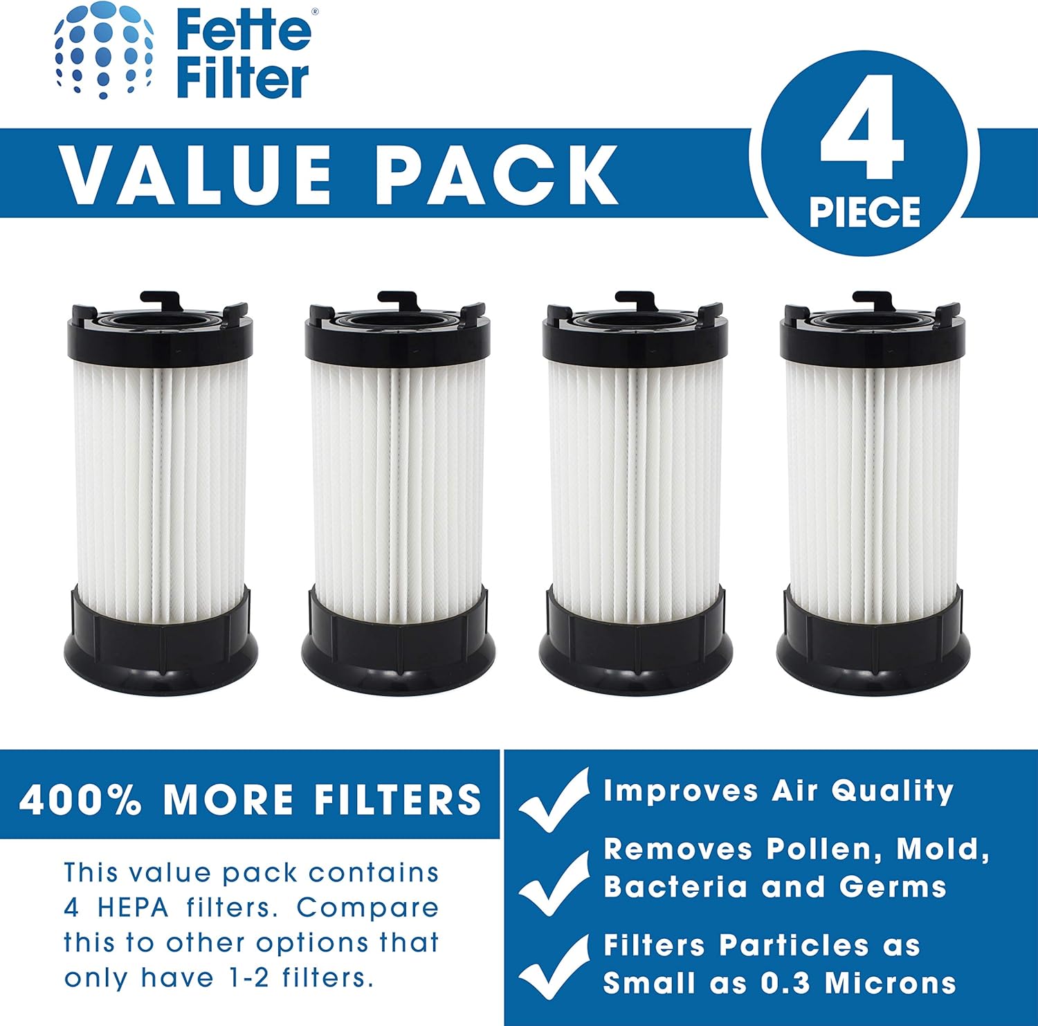HEPA Filter DCF-4, DCF-18 Compatible for Eureka. Compare to Eureka Part # DCF-4 DCF-18 62132 63073 3690 18505 and fits 4700 and 5500 series uprights. Also Compatible with GE (General Electric) Part # 61700, 61770, DCF1, DCF-1, 28608-1, 28608B-1; Compatible with GE Models: GE5550, 106585, GE-5550. This filter fits many different series of Eureka and GE Vacuum Cleaners. Below are just some of the Eureka and GE Vacuum Cleaners that take this filter: Eureka 4700 series Eureka 3690 Eureka Mighty Mite Eureka 5500, 5550 and others in the series Also Fits Eureka Models: 3690, 3690A, 3690AV, 3690B, 3690BV, 3695A, 5550A, 5550A-1, 5550A-2, EL6988A, 3690-A, 3690-AV, 3690-B, 3690-BV, 3695-A, 5550-A, 5550-A-1, 5550-A-2, EL-6988-A Eureka Maxima - 4700D, 4711BZ, 4704BLU, 4704PNK, 4704PUR, 4711BZ Eureka Boss Power Plus - 4703D, 4703BLU Eureka Pet Pal - 4716AVZ Eureka LightForce 300 - 4718AVZ Eureka LightSpeed 100 - 4709AZ Eureka LightSpeed - 4700D Eureka Maxima Bagless Uprights Models 4700(BLM, LMP, LTA, ONG, RED), 4700A, 4700D, 4701A, 4701AZ, 4702A, 4703A, 403BLU, 4703D, 4704A, 4704BLM, 4704BLU, 4704LMP, 4704LTA, 4704ONG, 4704PNK, 4704PUR,4704RED 4709AZ, 4711AZ, 4711BZ, 4712AZ, 4716AVZ, 4718AVZ Also fits GE Part # 61700, 61770, DCF1, DCF-1, 28608-1, 28608B-1. Packaging may vary. This is not a Eureka OEM product. The Eureka brand names and logos are the registered trademarks of their respective owners. Any use of the Eureka brand name or model designation for this product is made solely for purposes of demonstrating compatibility