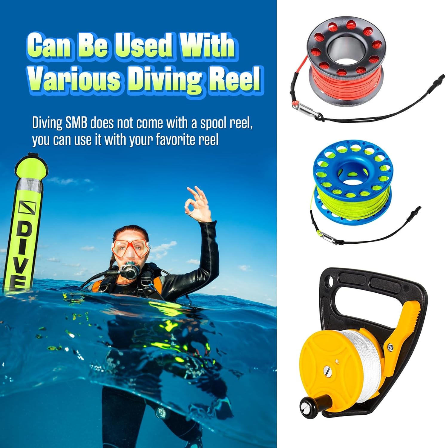 A Surface Marker Buoy (SMB) is an essential safety tool for divers who need to be clearly visible on the surface. This high-visibility inflatable SMB helps signal your location to boats and surface teams after ascent.Designed with a reflective strip and dive flag, it improves visibility in various sea and light conditions. The integrated over-pressure valve helps manage air expansion during ascent, while the durable nylon construction provides dependable performance dive after dive.With multiple inflation options and a lightweight, packable design, this SMB is suitable for scuba diving, freediving, snorkeling, and other open-water activities where surface visibility matters.