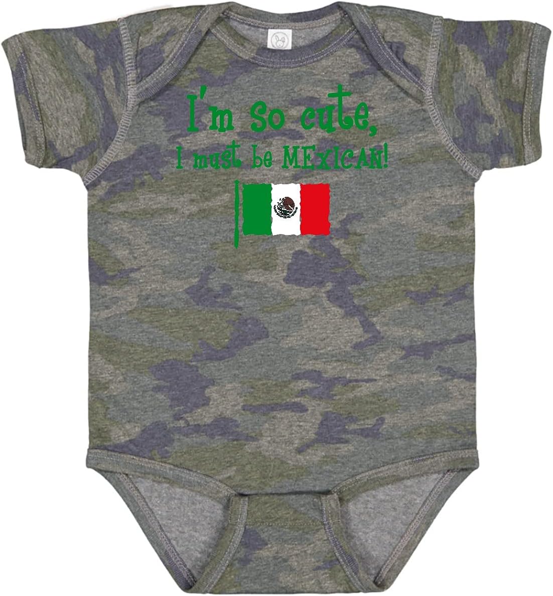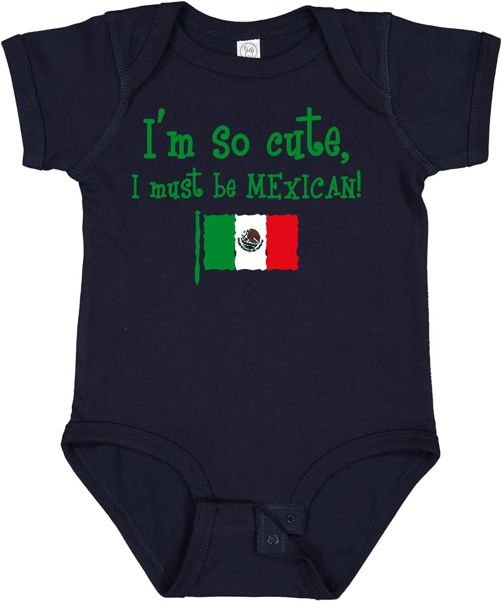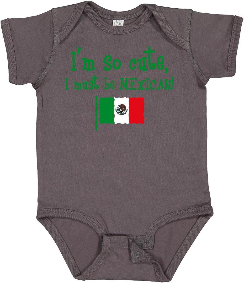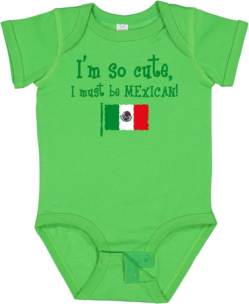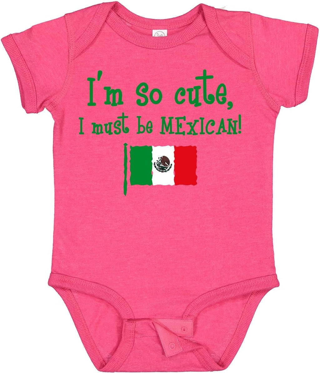 Baby Bodysuit with the flag of Mexico says I'M SO CUTE I MUST BE MEXICAN!