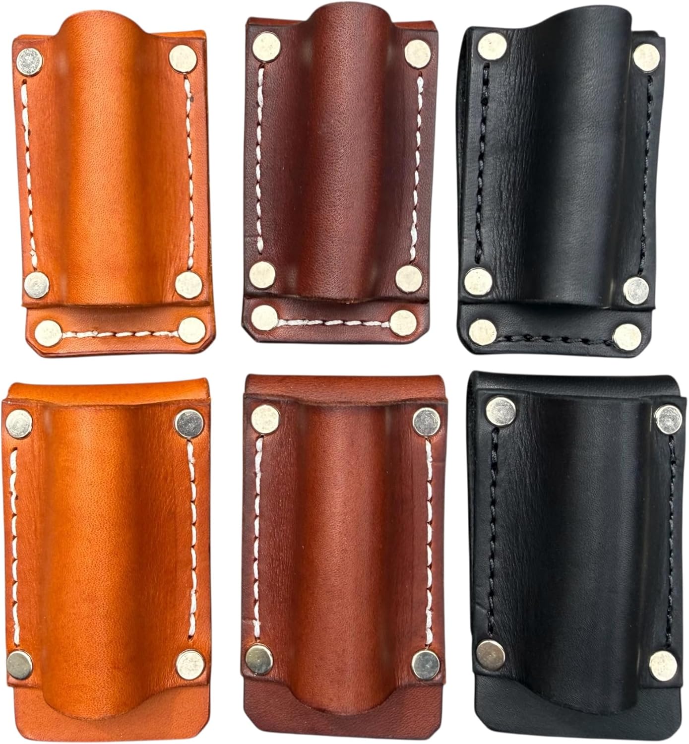 This holster will fit MOST AA battery small flashlights. Fits: Mini Mag, Terralux, and many more! The opening measures around 7/8". The leather is flexible to accommodate slightly larger flashlights. Made from 6-7oz saddle leather by Hermann Oak tanned in the USA. Handmade and hand finished. This product is all about quality. Super heavy duty to last years! Measures around 3.5 inches tall, 1.75 inches wide. Hole is 7/8 inch diameter Mechanic tested and mechanic approved on a daily basis.