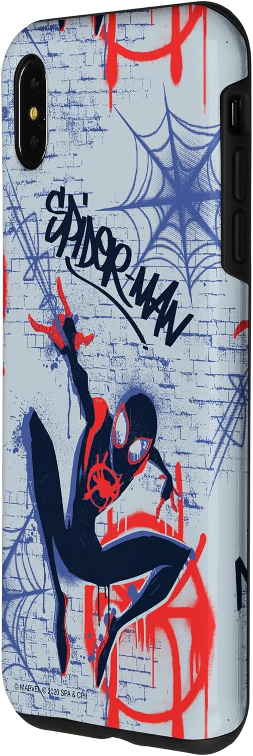 Spider-Man Graffiti Art design. Without Peter Parker, how will Miles Morales leave his mark on the city as the one and only Spider-Man? Channel the Brooklyn teen turned Super Hero with this Miles Morales Spider-Man phone case, featuring an awesome print of Miles swinging against a brick wall. Notice Miles' spider logo in red spray paint on his chest. Marvel fans from every Spider-Verse will want this bold phone case, perfect for swinging through your own city. This Marvel phone case is available for the following iPhone and Samsung models: iPhone SE (2020), iPhone 7, iPhone 8, iPhone 11, iPhone 11 Pro, iPhone 11 Pro Max, iPhone X/XS, iPhone XS Max, iPhone XR, iPhone 7/8, iPhone 7 Plus/8 Plus, Galaxy S10, Galaxy S10+, Galaxy S10e, Galaxy S9, Galaxy S9+, Galaxy S8, Galaxy S8+.