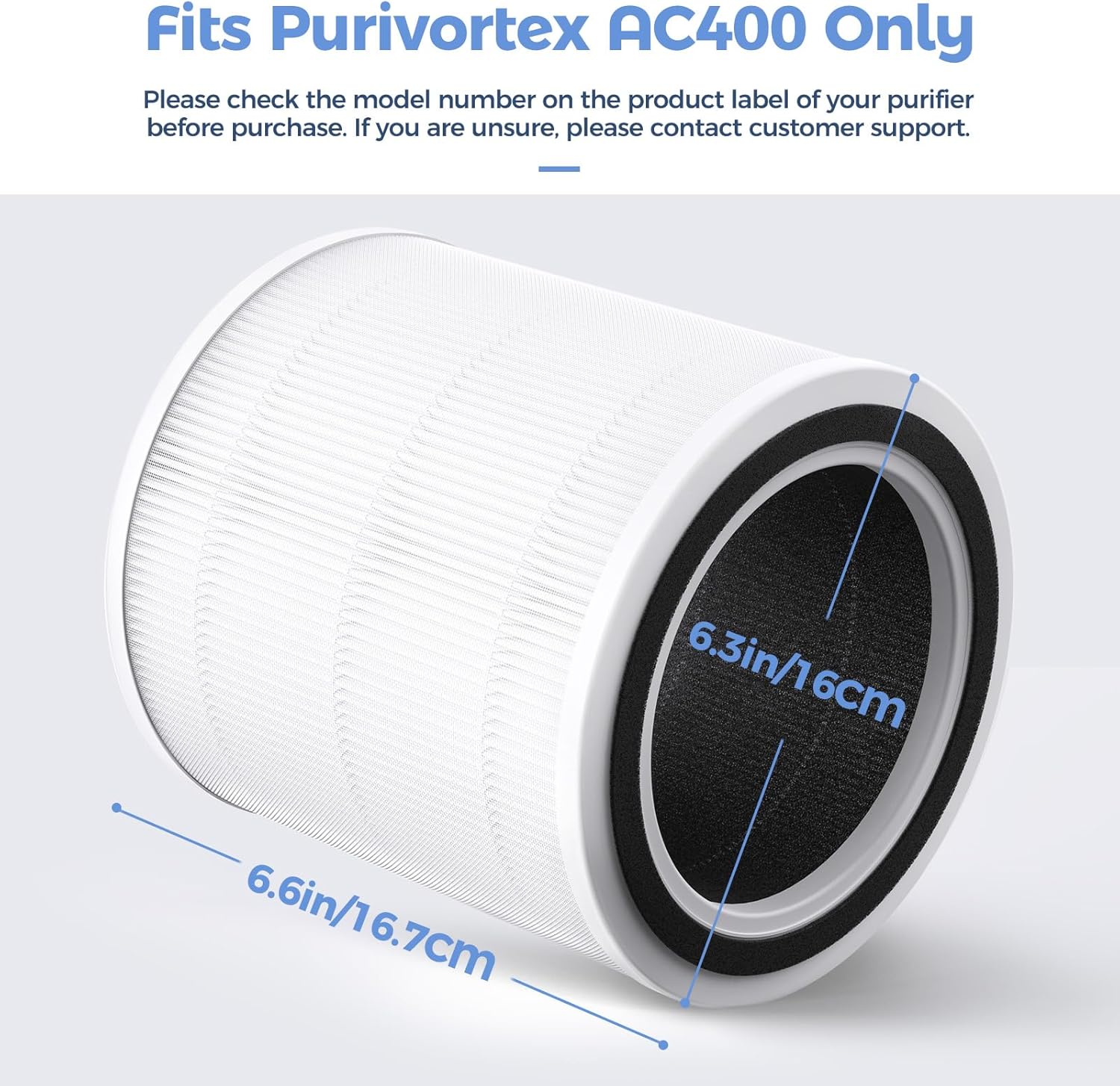 Purivortex AC400 Air Purifiers Multi-Effect HEPA Replacement Filter, 3-in-1 Filter, White