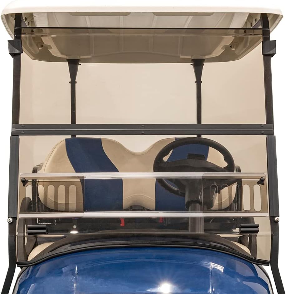 Who likes rain in their face when driving? Our flexible design allows you to protect yourself from the elements while getting some fresh with our adjustable air vents. Each vent on this windshield is adjustable and tightens with a locking thumb screw, allowing you control of how much airflow is coming into the cart. Then on those hot days, you can fold down the windshield for maximum ventilation. Specifications: Fits Club Car Precedent / Onward / Tempo models Tinted, High-quality 1/4" thick acrylic (tint rated at 35%) Snug, vibration-free fit Rubber trim at the bottom Left and right vents for additional airflow Installation hardware included Made In The U.S.A.