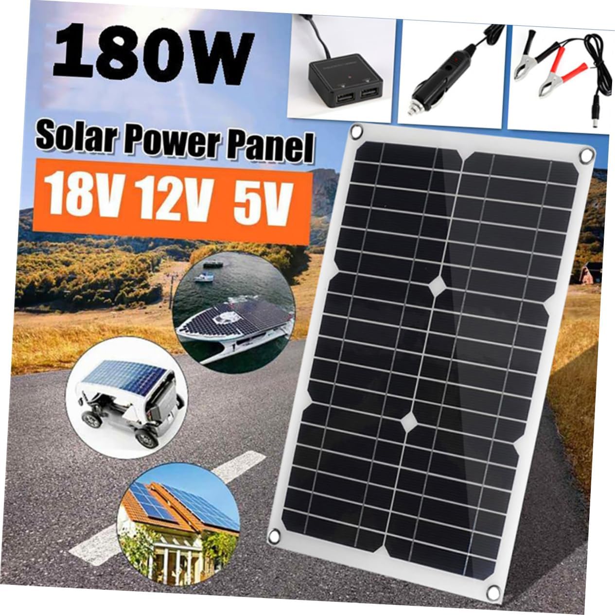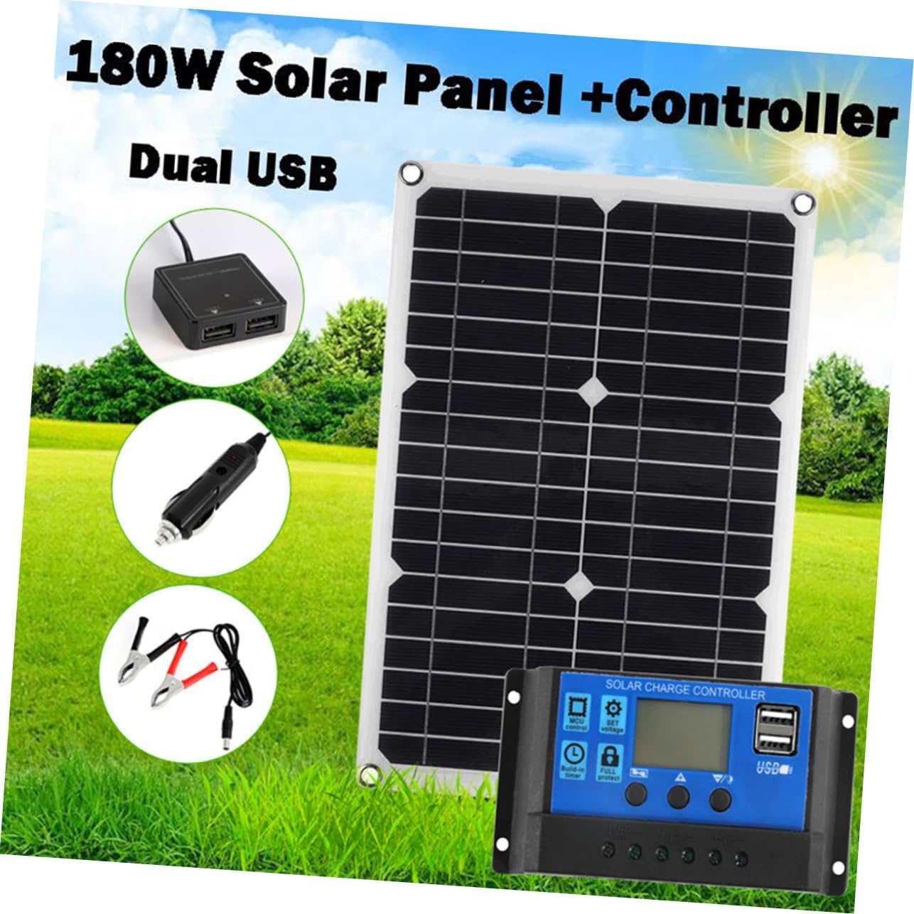 Package Include 1 x solar panel 1 x solar controller 1 charger 1 x battery clip 4 x suction cups 2 x 1 x manual Features Output: 18V solar kit. Open circuit voltage : 20V marine solar panel. Specification: solar panel with charge controller -Material: Monocrystalline Silicon, ABS, Rubber, Copper waterproof solar panel. Maximum power voltage (vmpp): 18V solar chargers. Maximum power (impp): 0.75A solar charging panel. -Size: About 42.00X28.00X2.50cm/16.51X11.00X0.98in trailer solar panel kit. Test condition: AM=1.5 waterproof pwm solar charge controller. -Color: Black boat solar panel. Short circuit ( ): 1A mini solar panel Maximum power (pmax): 15W portable solar panel. - The controller has intuitive display that can clearly indicate the status and data is able to modes and parameter configuration rv solar panel. - Strong resistance, can withstand different environments, good waterproof performance flexible solar panel. - Flexible configuration of solar module parameters for more flexible configuration of controllers and batteries solar charge controller. Irradiance=1000W/㎡ small solar panel kit. - First, connect the battery, then connect the solar panels, when you first use it, make sure the battery has enough voltage solar panel.Goods Informationcharge controllers for solar panels This product is a solar cell panel kit, made of monocrystalline silicon, ABS, rubber and copper material for durable to use, which can absorb sunlight and transfer the solar energy into electricity power.solar charge controller Suitable for outdoor activities, such as camping, cycling, self-driving trip, etc