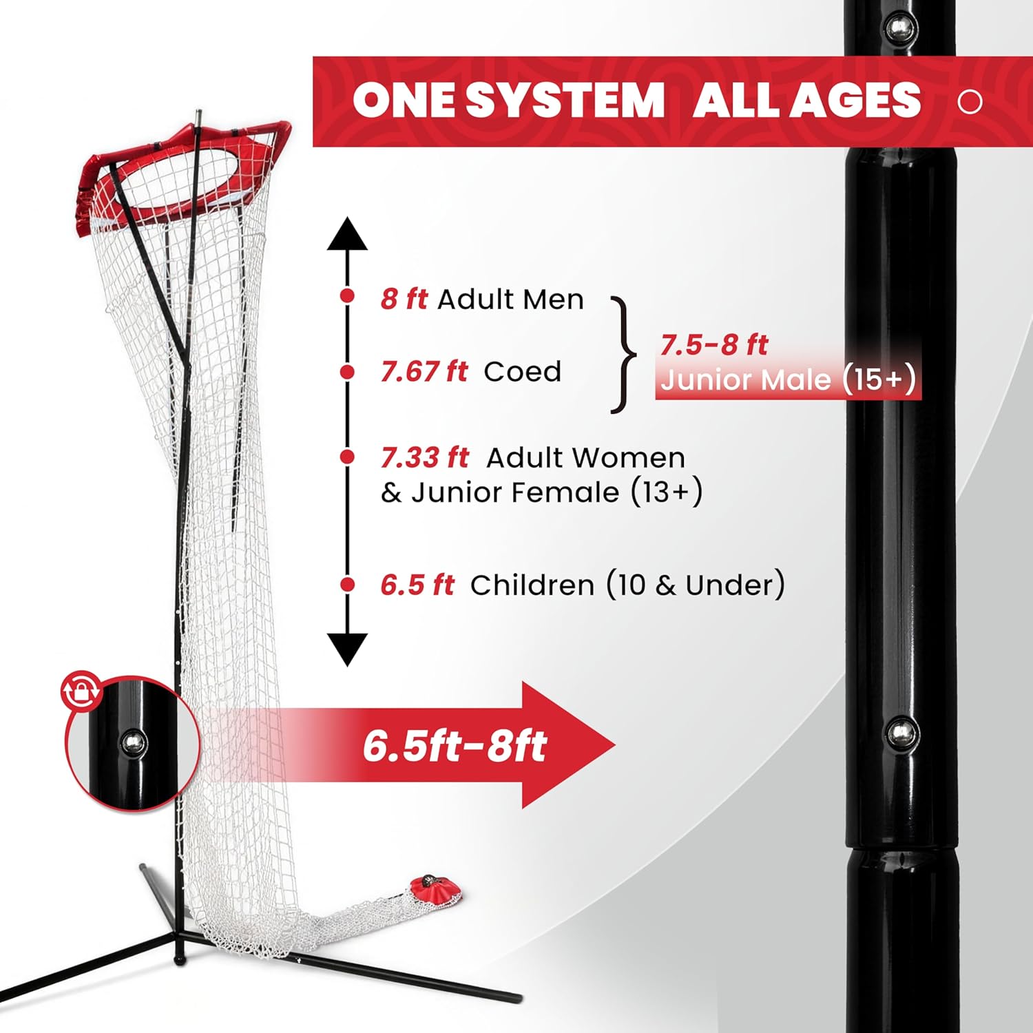The SCHENG-V Volleyball Setter Trainer is designed to support focused volleyball setting practice for players developing core setter skills. With an adjustable height range of 7.5 to 11.5 feet, the trainer adapts easily to different training needs and player levels.